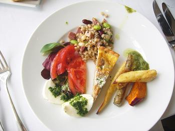 メインの鯛のポワレです。上にのっているのはオリーブを刻んだものを数種類のハーブとミックスしたものです。確かに美味しいのですが、正直ずばぬけて美味しいといったものではありませんでした。
