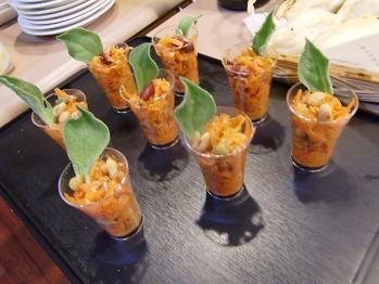 こちらもペルー料理です。なんともおしゃれなカップ入りのにんじんのサラダです。一口食べて食べた事のない調味料の味に「何だろう?」とドキドキする、こちらも私好みの味でした。