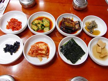 韓国は朝食もたっぷりといただきます。毎食このような小鉢が出されてしかもタダで食べ放題。