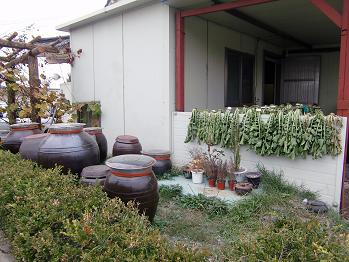 道中にちょっと見かけた農家の裏庭です。立ち並ぶカメの中はキムチでも入っているのかと思ったのですが、なんとコチジャンが入ってるいるのだそうです!