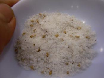 サンゲタンの鶏肉につけるお塩です。何が入っているのか分かりませんがとても美味しかったので、思わずパチリ。
