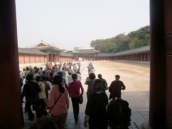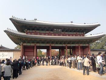 旅の最後に訪れた韓国の世界遺産のメインとも言うべきソウルにある李王朝の王宮「昌徳宮」です。正門前には多くの観光客でいっぱいです。