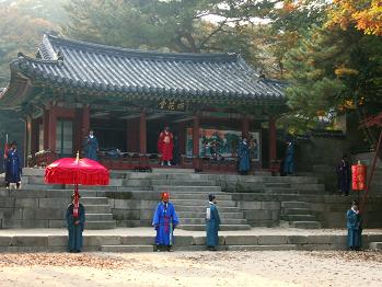 そんな森の中に作られた皇太子の宮殿(日本でいう赤坂御所みたいなものでしょうか?)で韓国ドラマの時代劇さながらの再現劇が上演されていました。