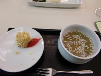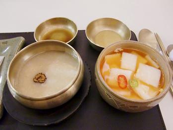 さてこれは水キムチと緑豆のお粥です。面白い点は水キムチのいただき方です。あくまでお料理の間に口直しにいただくためだけのものだそうです。